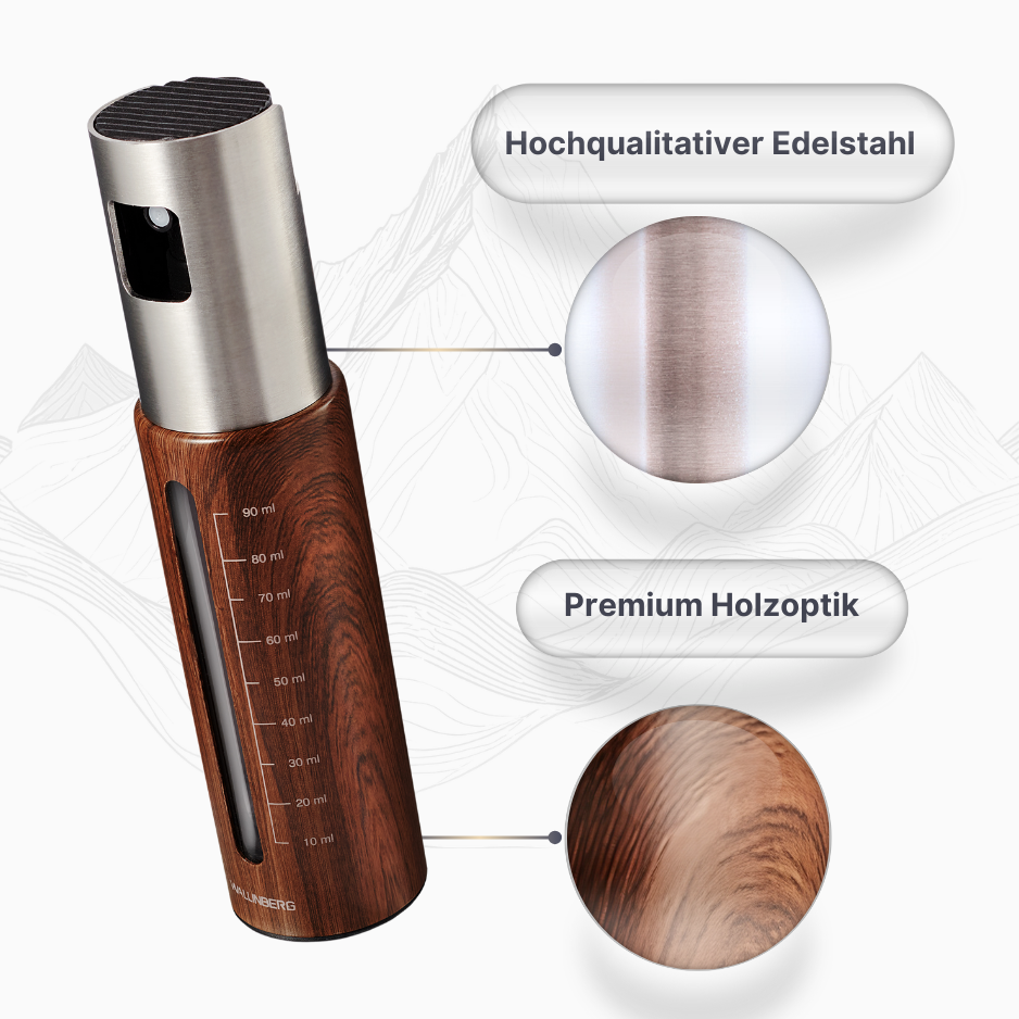 Vom Brot und Salat bis Ofen, Pfanne und Grill, der WALLINBERG Öl-/Essigsprüher veredelt jede Zubereitung mit feinem, gleichmäßigem Nebel. Präzise Dosierung statt Tropfen: weniger Öl, mehr Kontrolle und saubere Arbeitsflächen. Robust, nachfüllbar und alltagstauglich, ein Tool für Küche, Esstisch und Garten.
