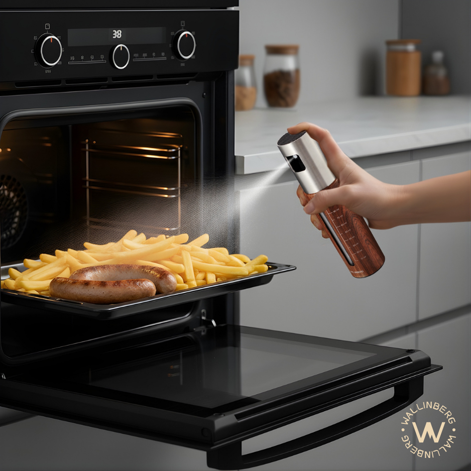 Mit einem hauchdünnen Ölfilm werden Pommes, Gemüse oder Hähnchen gleichmäßig gebräunt. Ideal für Backofen und Heißluftfritteuse.